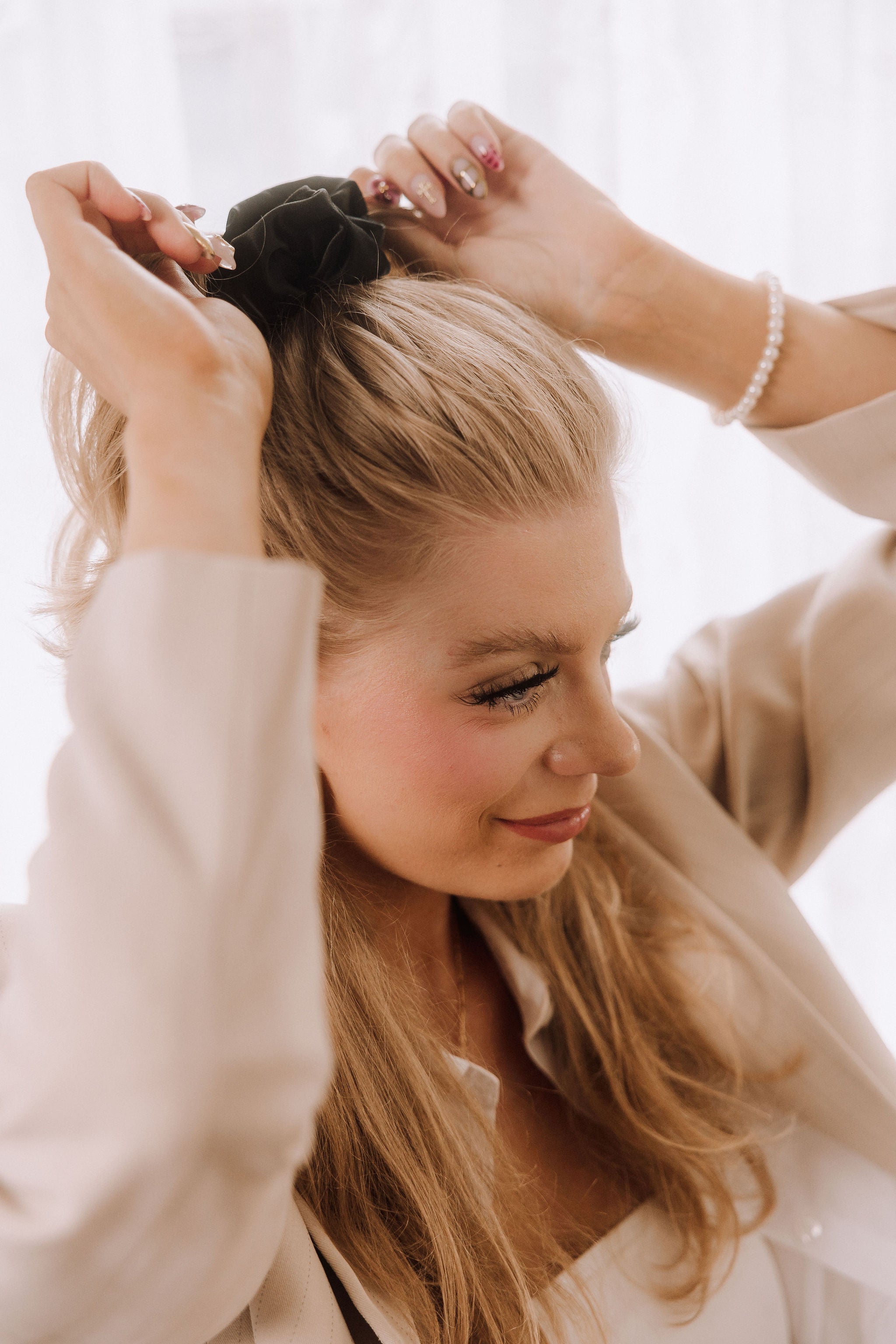 Healthy hair makes you look and feel beautiful. Our silky-smooth luxury scrunchies glides over hair and gently holds it in place. This reduces hair damage and prevents frizz, creases and kinks. Beauty experts say to wear silk scrunchies regularly if you want to say goodbye to breakage and hello to beautiful hair.