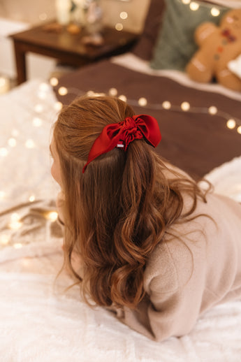 Embrace the festive spirit with our limited edition Silk Bow Scrunchie Christmas Collection. This exclusive set features two stunning colours - a vibrant green and a rich red - perfect for adding a touch of holiday cheer to your hairstyle. Crafted from the finest silk, these scrunchies are designed to be gentle on your hair, reducing breakage and maintaining your hair's natural shine.